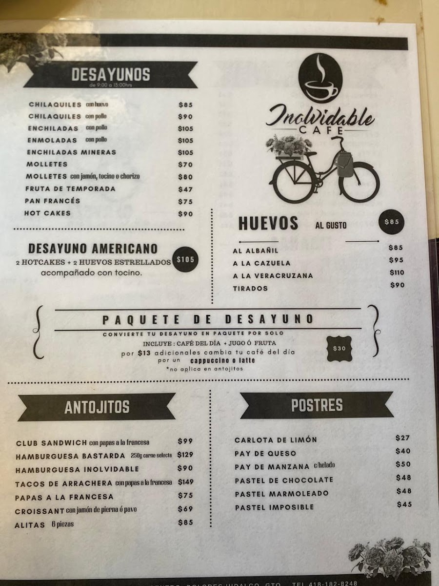 INOLVIDABLE CAFE RESTAURANTE Menu